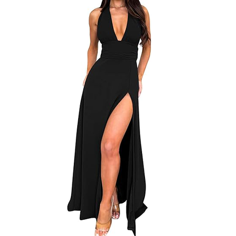 Kadın yaz Maxi özel seksi Halter boyun spagetti askı Sundress kolsuz marka yeni rahat balo zarif katı A-Line