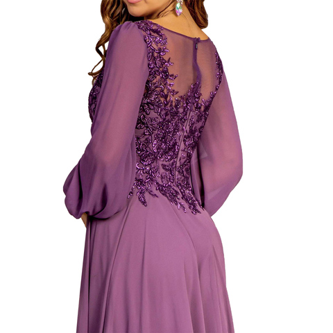 Metro zarif Casual bayan uzun kollu Maxi elbise şifon örgü pullu imparatorluk bel mütevazı resmi elbisesi FloorLength abiye