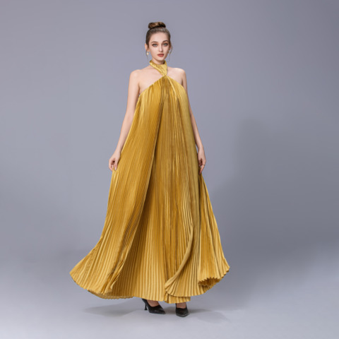 Tasarımcı özel altın akşam zarif elbise A-Line kıyafeti marka yaz yeni kadınlar için giysi toptan elbiseler